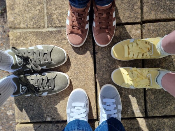 Same shoes, but subtle enough to be different. There’s me, who’s usually a safe white or black trainers girl, but in this instance I’ve gone for grey to blend between the two. There’s my husband who loves a classic brown and is happy with whatever as long as it goes with his favourite pair of jeans. There’s my son who picked the boys trainers in olive, to get that urban street vibe so he can look cool at college. And then there’s my daughter, the queen of pastels and all things summery, who chose yellow trainers to add a joyful splash of colour to her outfits.