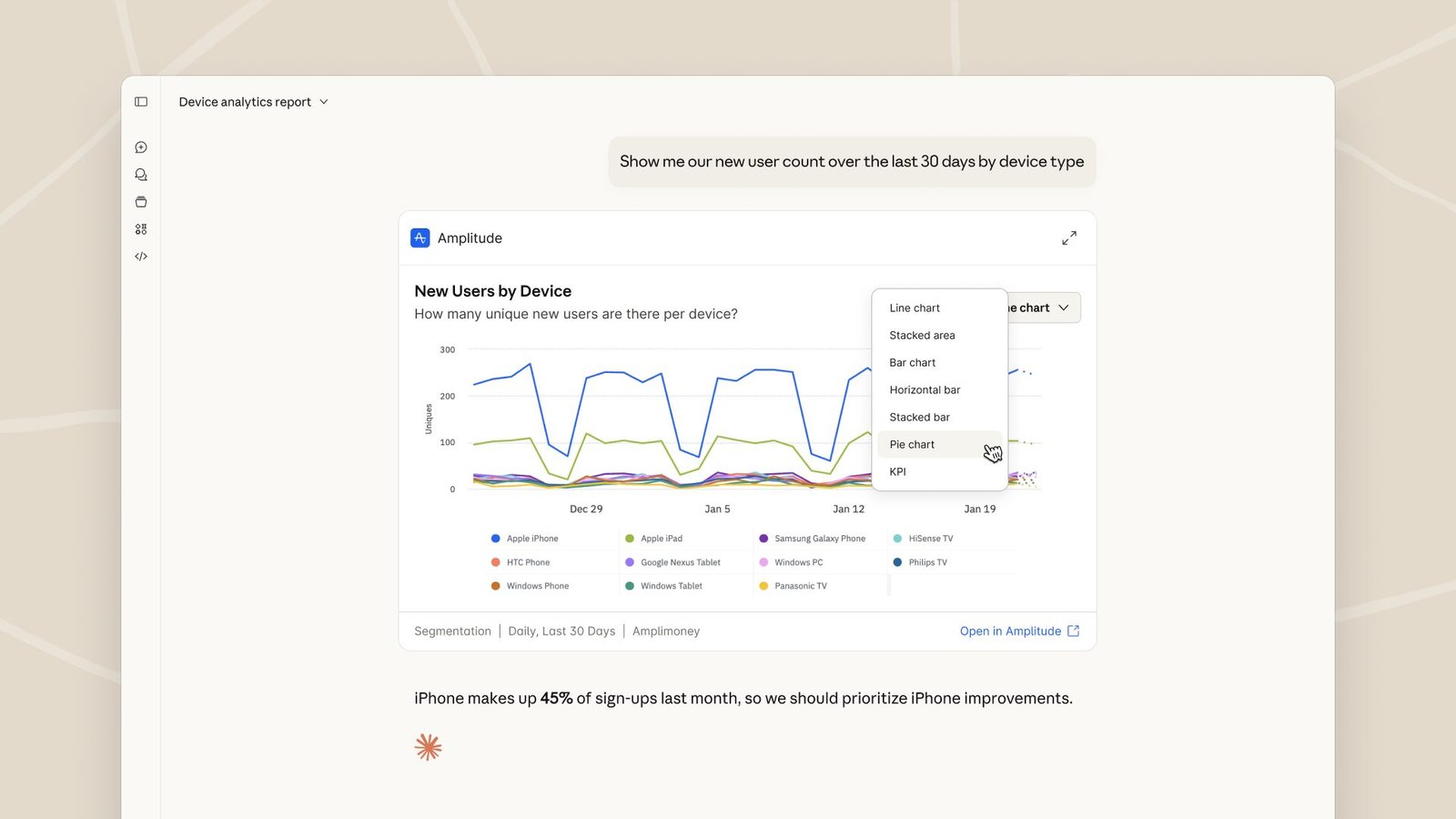 - Amplitude: Build analytics charts, explore trends, and adjust parameters