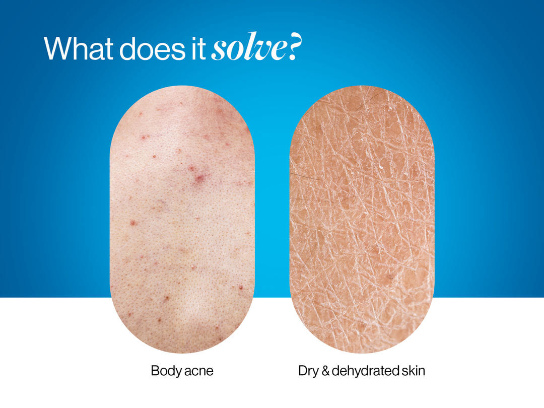 Body acne needs salicylic acid or AHA to clear clogged follicles. But salicylic acid is oil-soluble and can leave skin feeling tight. If your skin is already dry, that drying effect compounds the problem.