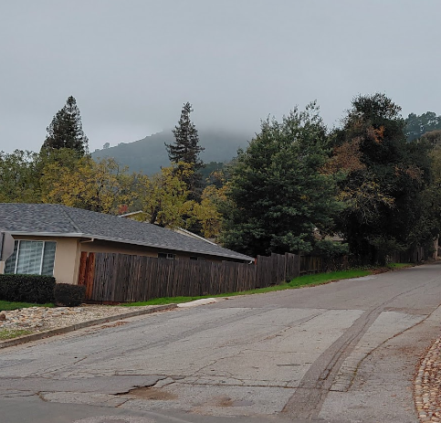 El Toro from its base at the top of main Ave, with the top hidden in the fog