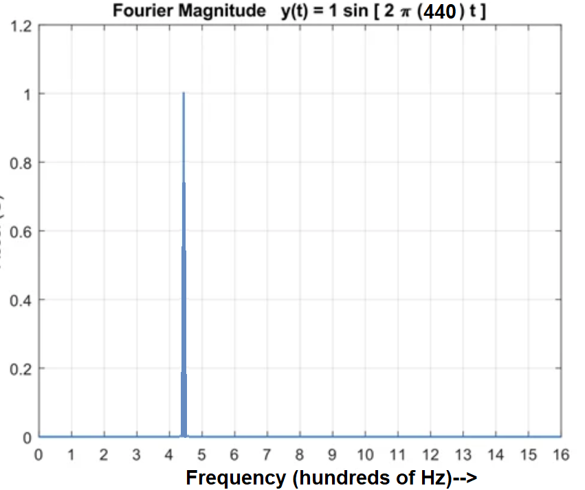 What does graph #2 look like? For every note that’s not A 440 the contribution is zero. So graph #2 is zero everywhere except for a sharp spike at A 440.