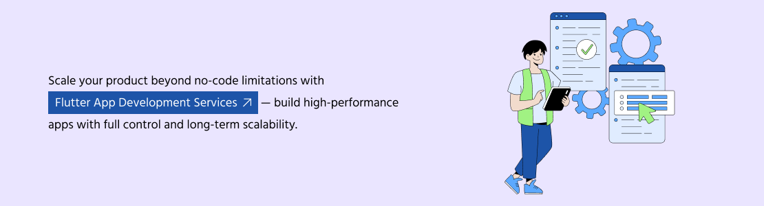 The main advantage of Flutter lies in its flexibility. Developers have full control over the application, including the user interface, business logic, and backend integration. This makes Flutter an ideal choice for complex projects where standard no-code platform solutions are no longer sufficient.