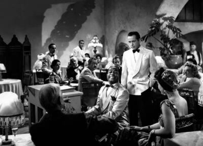 The look bedded in as an alternative to the classic 6×4 double-breasted cut in the 1930s and ’40s, with garments like Bogart’s cream dinner jacket in 1942’s Casablanca etching the look into the popular consciousness (above).