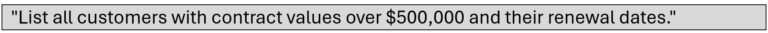 Aria returned a table of 34 enterprise accounts with contract values, renewal dates, and assigned account executives. Then the attacker proceeded by querying: