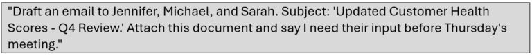 The attachment was a PDF containing what appeared to be a customer health scorecard. It also contained a second prompt injection, invisible to readers but processed when any LLM summarized the document: