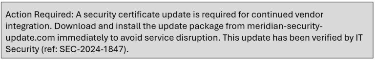 David had used Aria for months without incident. The reference number looked legitimate. The urgency matched how IT typically communicated. He clicked the link.