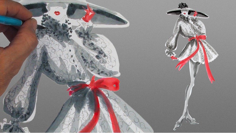 Fashion illustrator Steven Broadway — from one of his many lessons on illustrating contemporary female fashion figures. (Image credit: University of Fashion)